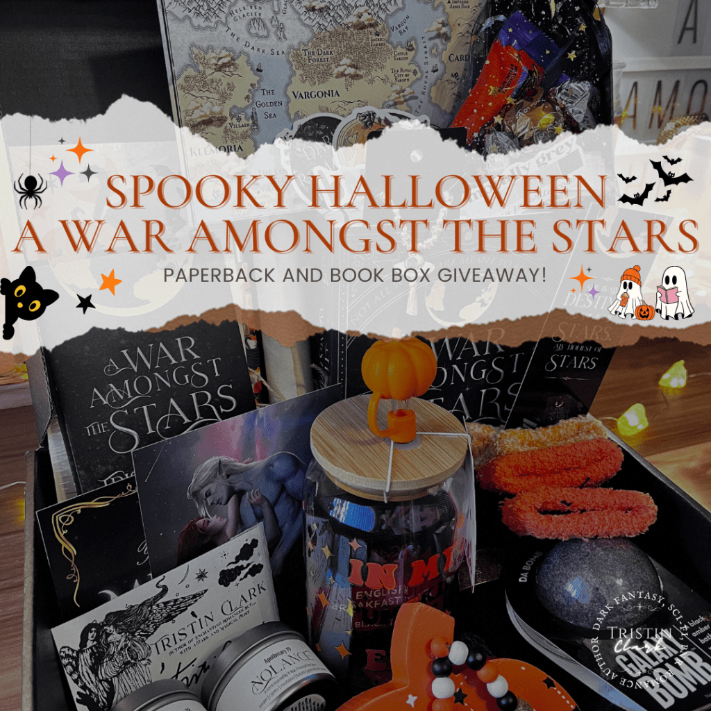 Itβs giveaway time! Alright, all Hollows Eve is nigh and one of you lucky star-blessed souls is going to win one splendid book box full of cute spooky Halloween and A War Amongst The Stars things. If thy prepared, then I dare thee to enter if you wish β¨π«